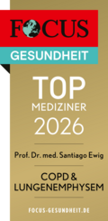 COPD ist das Kürzel für eine chronische Obstruktion (= Behinderung des Ausatmungsflusses) und betrifft überwiegend (wenn auch nicht ausschließlich) Raucher. Raucherentwöhnung kommt daher in unserer Klinik ein besonderes Gewicht zu. Auch wenn die COPD nicht heilbar ist und nicht selten erhebliche gesundheitliche Störungen nach sich zieht, besteht für Resignation oder gar Nihilismus kein Grund. Eine sorgfältige Betreuung sichert ein Höchstmaß an körperlicher Belastbarkeit sowie eine Verringerung akuter Exazerbationen (= Verschlechterungen, meist durch Infektionen) und sonstiger Komplikationen.